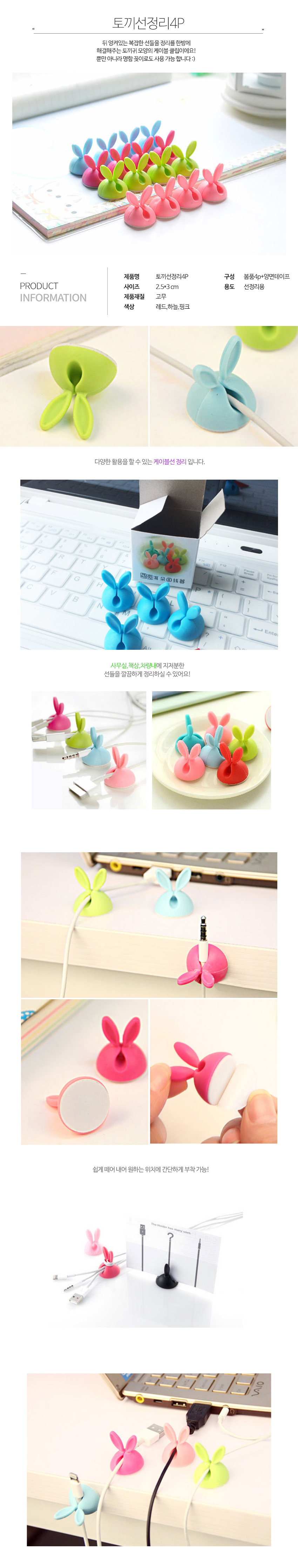 토끼선정리4P케이블타이 케이블정리 전선정리 선정리 배선정리 전선정리클립 컴퓨터선정리 책상선 이미지/