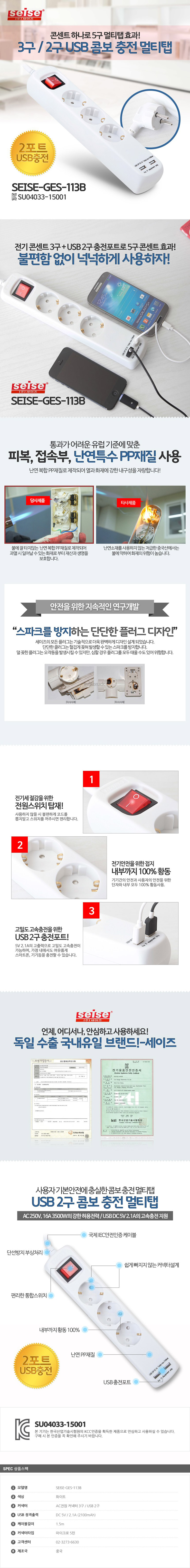 멀티탭 3구 접지 USB포트 지원USB 2포트 선길이 1.5M 이미지/