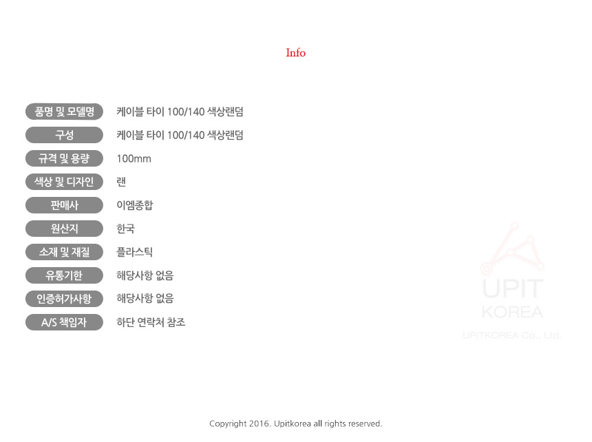 케이블 타이 100 140 색상랜덤 1031 이미지/