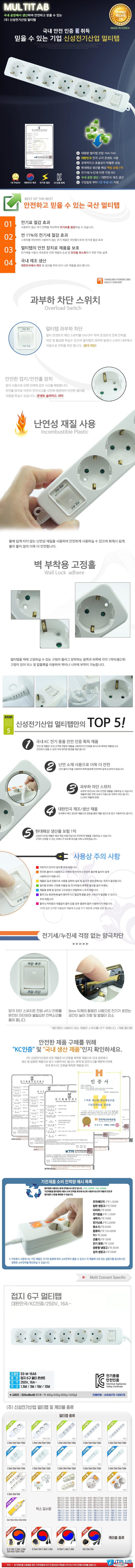 신성전기산업 국산 안전 멀티탭 콘센트 6구 5M(16A) 이미지/