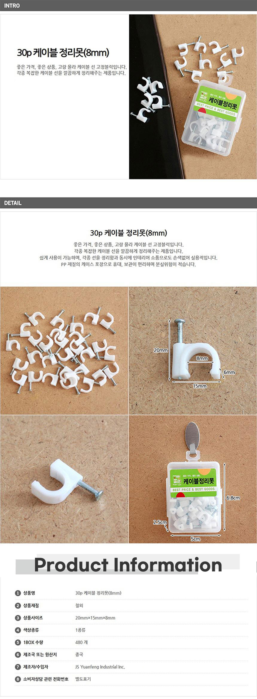 전선 케이블정리 못 8mm 30Px30개 인터넷선정리 이미지/