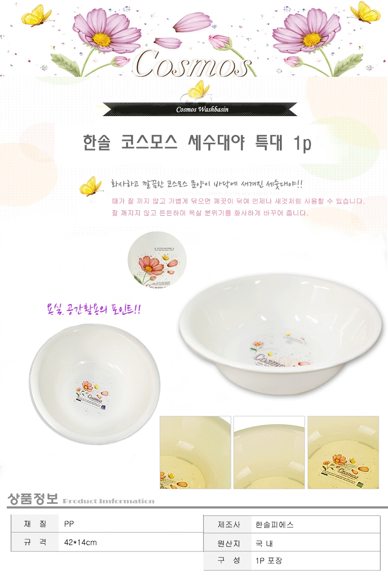 한솔 코스모스 세수 대야 특대 1p 세숫대야 대야 플라