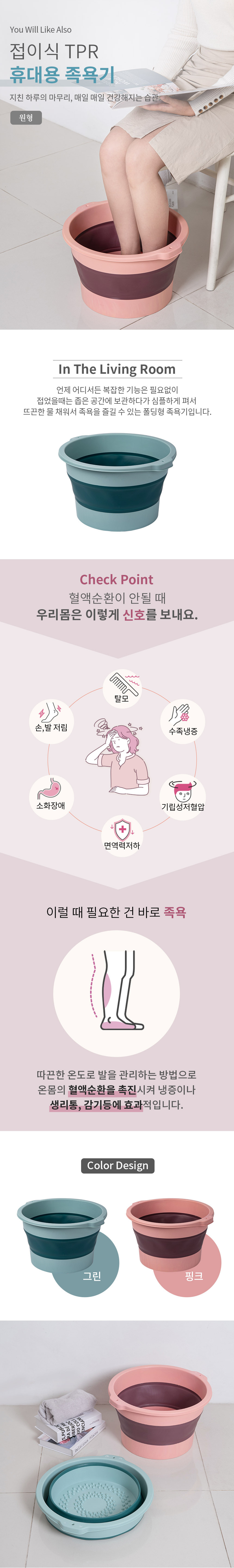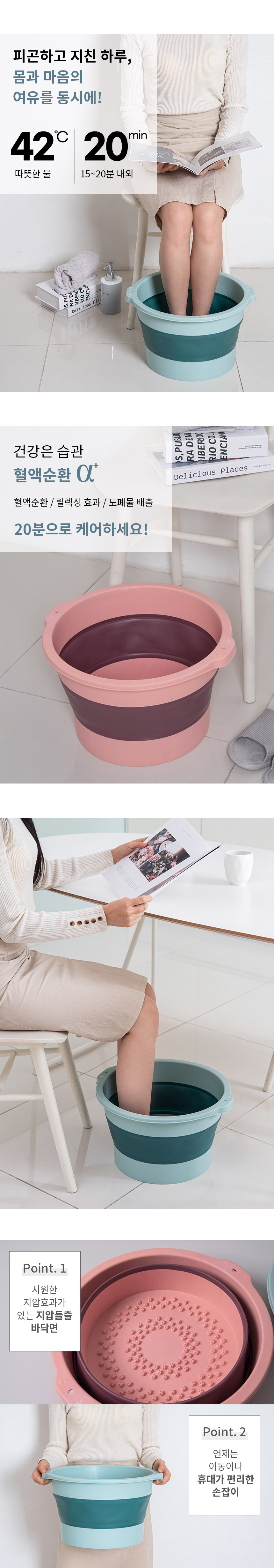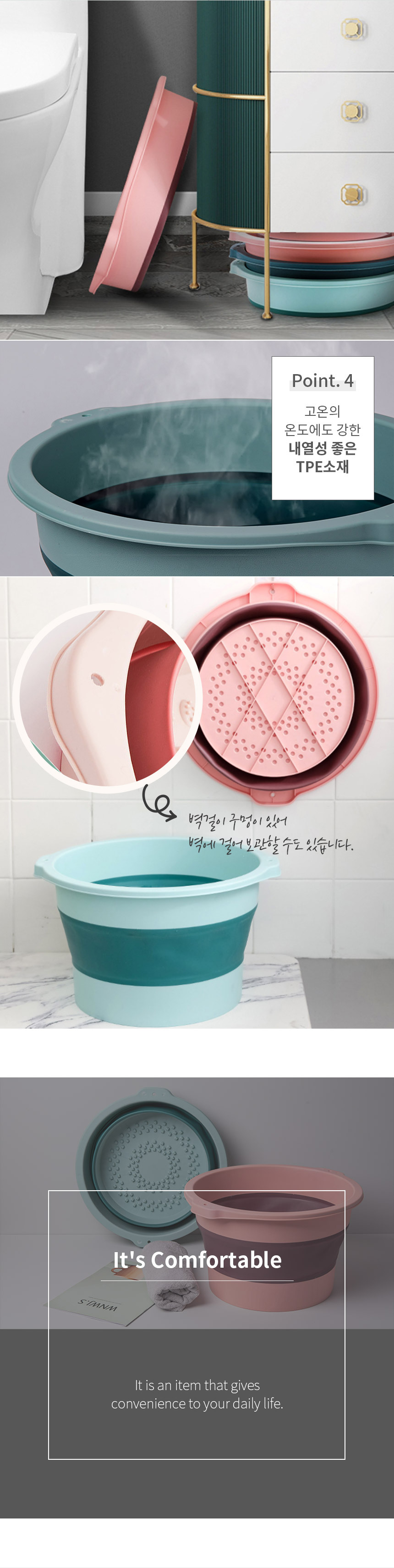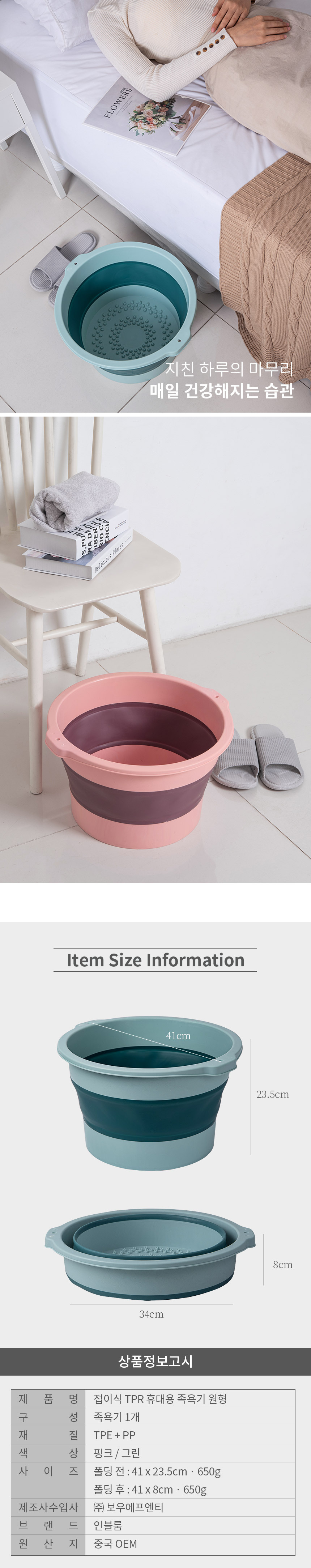 접이식 지압 인블룸 TPR 휴대용 족욕기 (원형) - 핑크 이미지/