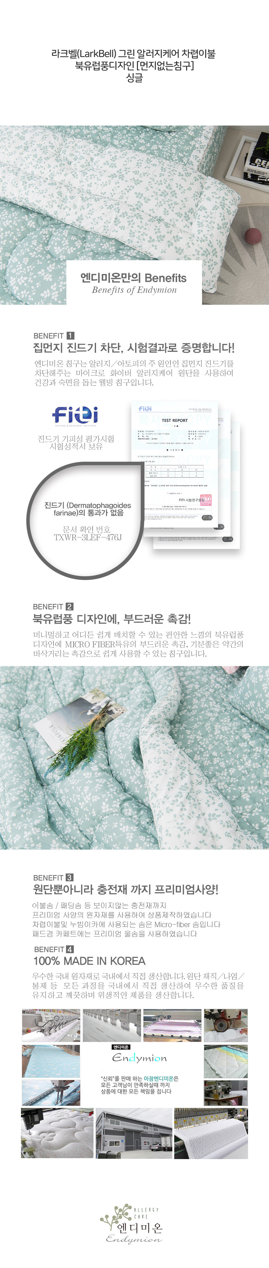 라크벨(LarkBell) 그린 알러지케어 차렵이불 / 북유럽풍디자인 [먼지없는침구]싱글 이미지/