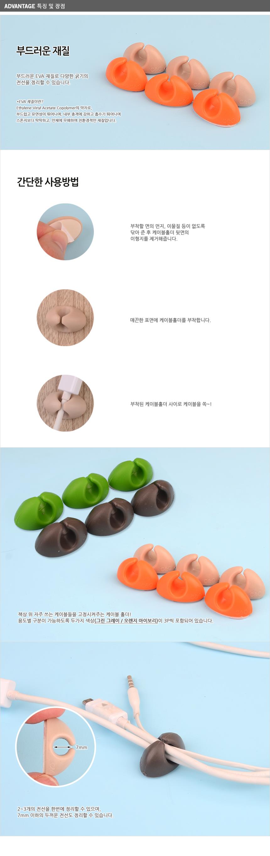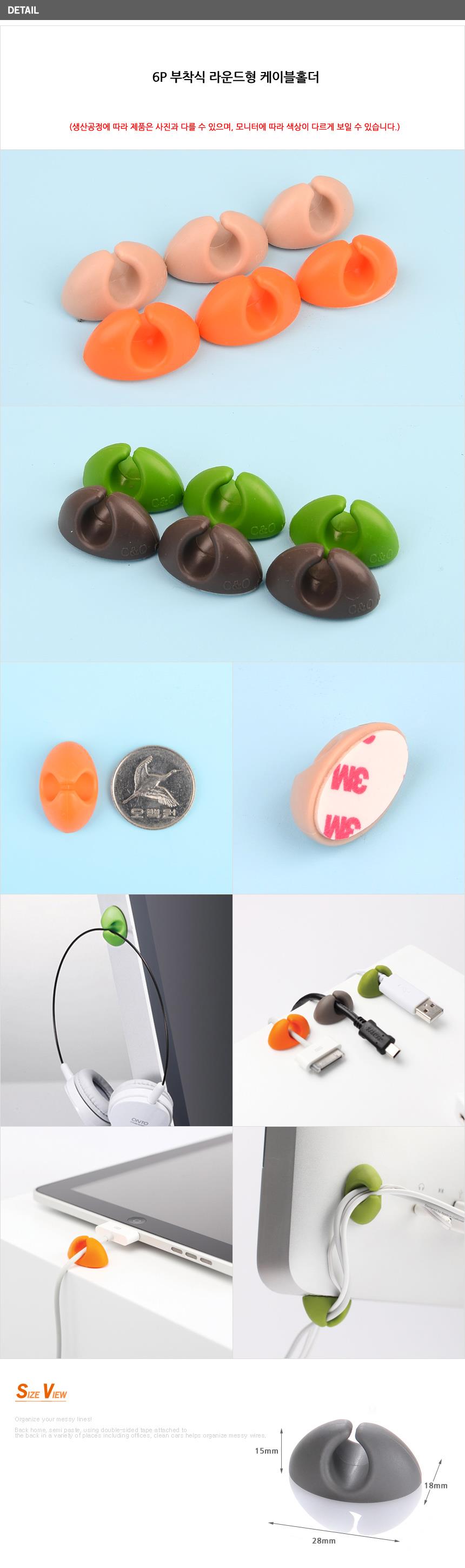 6P 부착식 라운드형 케이블홀더-색상랜덤x3개 사무실 이미지/