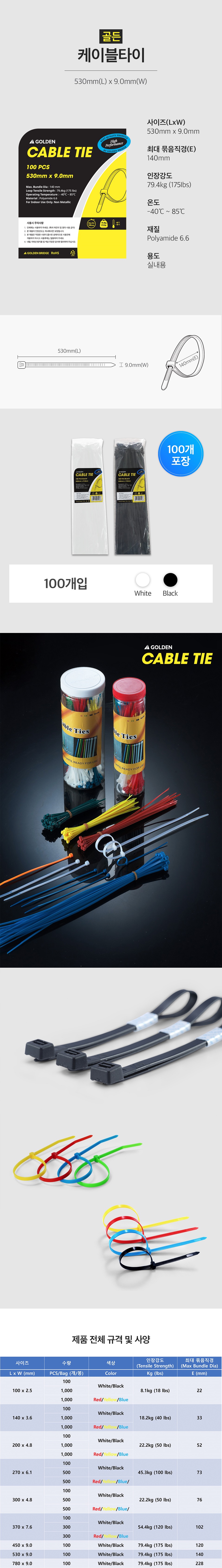- 케이블타이 규격: 530 x 9.0 mm