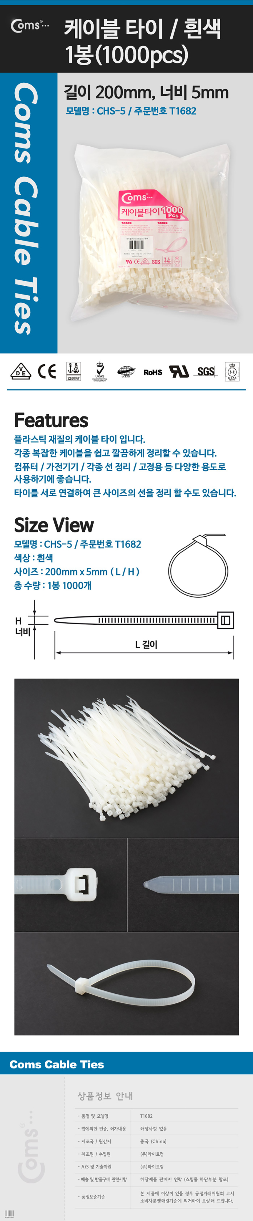 케이블타이 (1봉 1000pcs) CHS-5 흰색 200mm x 5mm