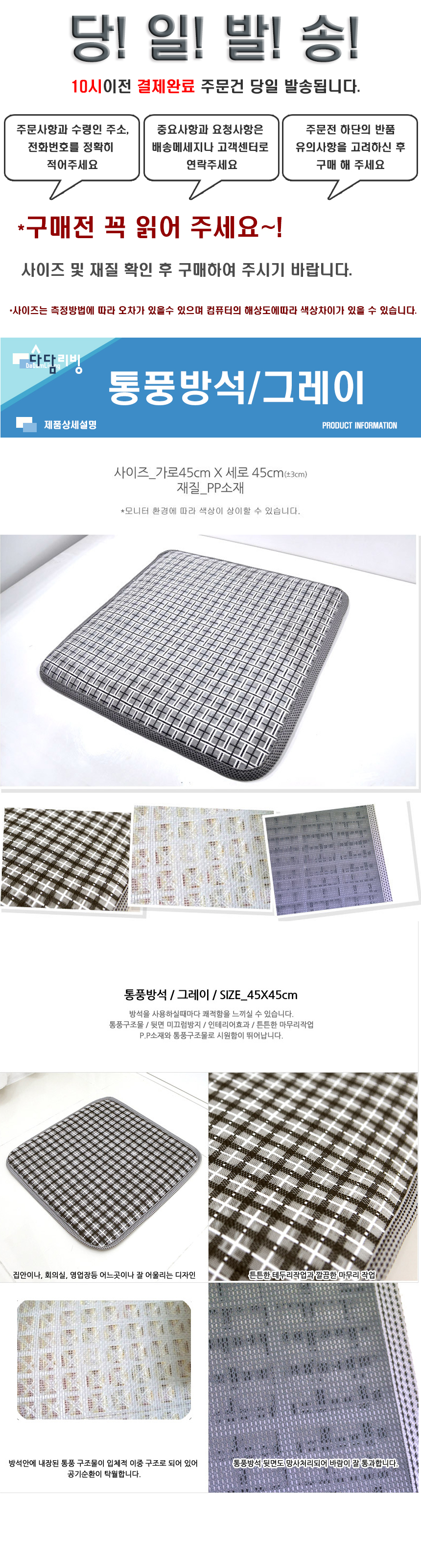 통풍방석그레이/시원한쿠션방석 망사방석 메쉬방석