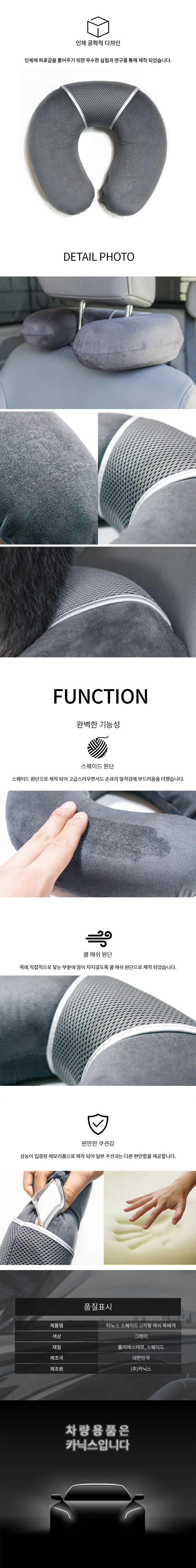 차량 목쿠션 베게 메모리폼 스웨이드 자동차 목받침 이미지/