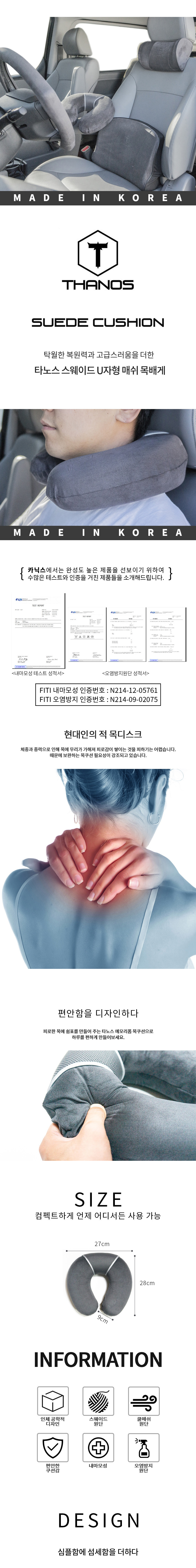 차량 목쿠션 베게 메모리폼 스웨이드 자동차 목받침