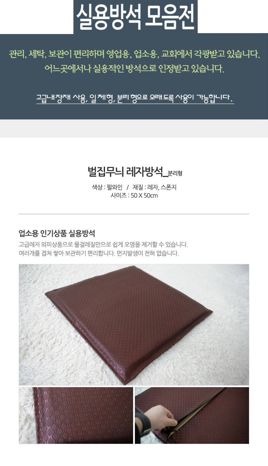퀄팅 레자방석 분리형/펄와인 식당방석 관리편한방석 이미지/