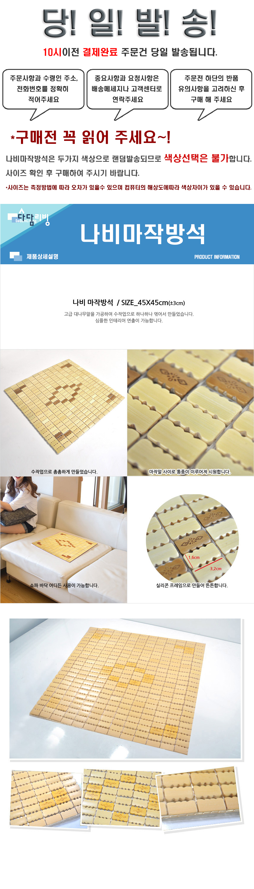 나비 마작방석/여름방석 통풍방석 대나무방석 쿨방석 이미지/