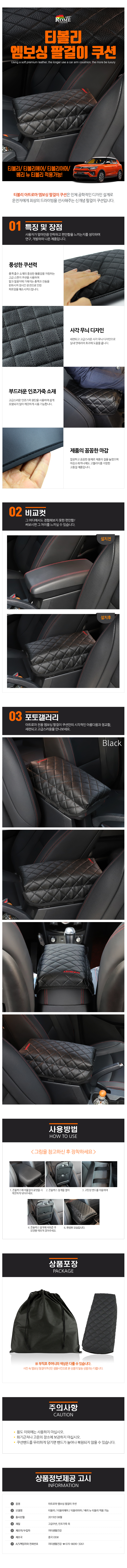 엠보싱 팔걸이쿠션 티볼리 팔쿠션 자동차팔쿠션 이미지/