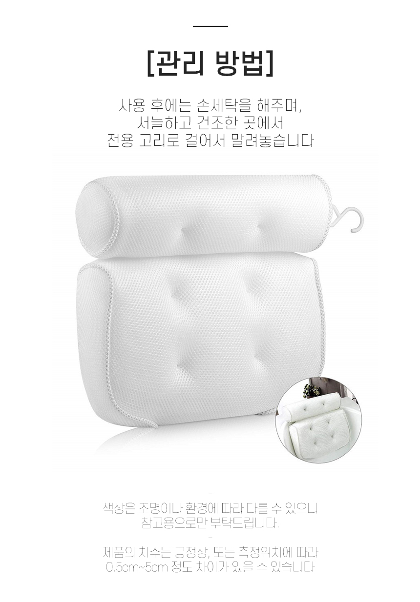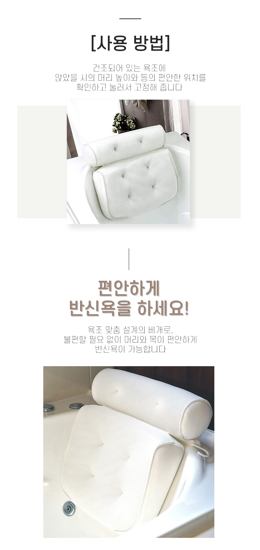 프리미엄 반신욕베게 욕조배게 등받이 목베게 목욕용품쿠션