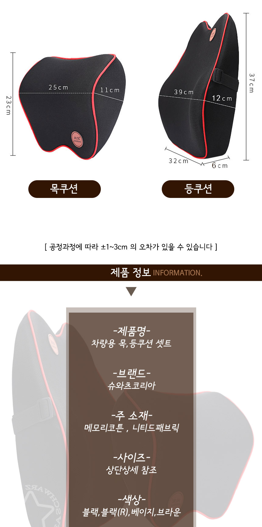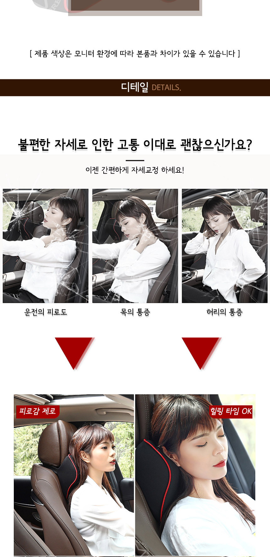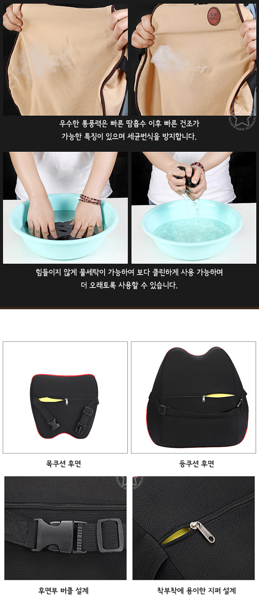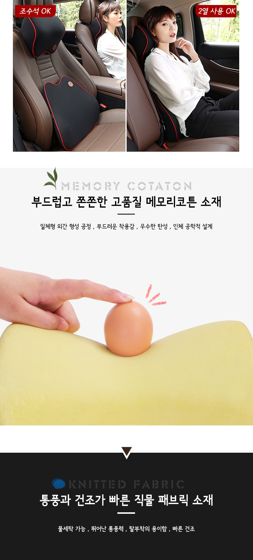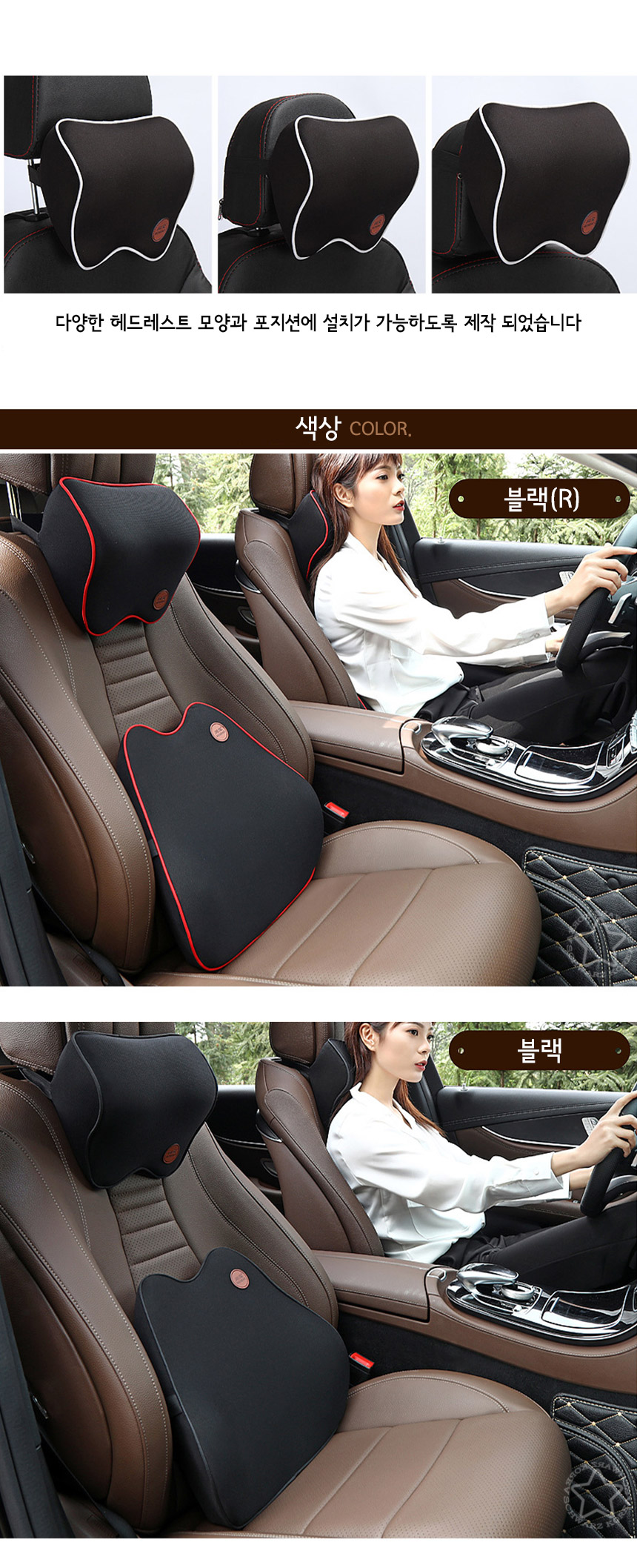 차량용 목쿠션/헤드쿠션/등쿠션/허리쿠션 세트 이미지/