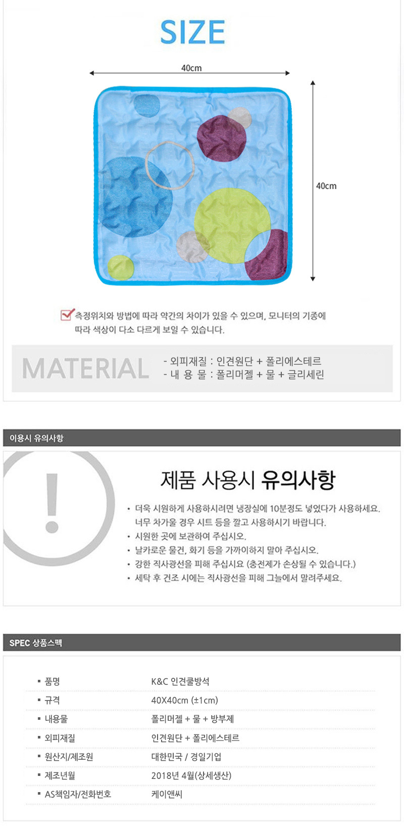 쿨방석/아이스 쿠션 쿨젤 쿨링 얼음 차량용 쿨매트 이미지/