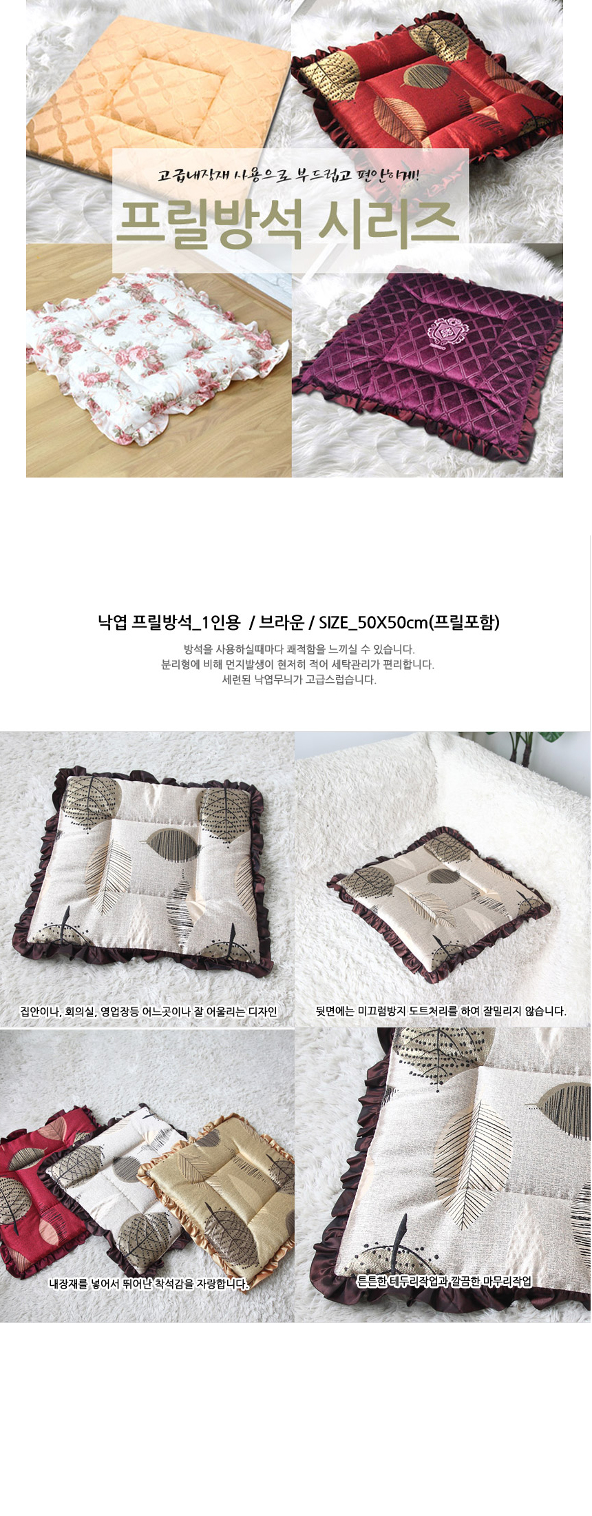 낙엽프릴방석/브라운 공단방석 고급진방석 식당방석