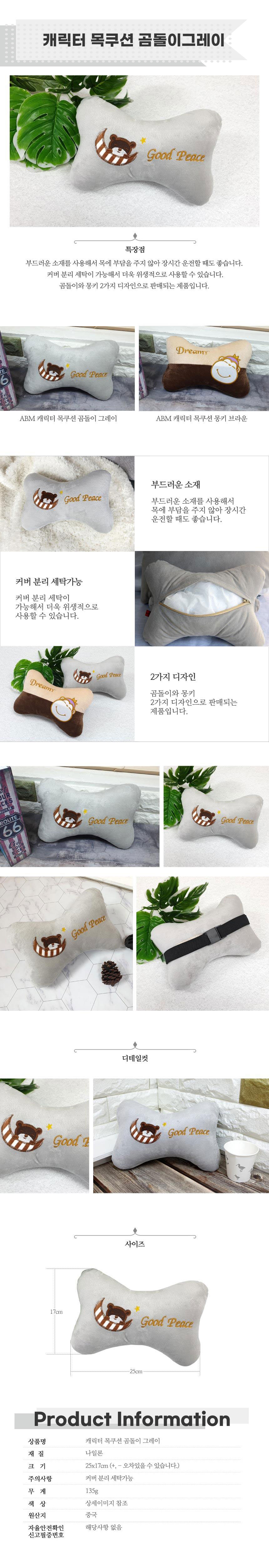 차량용 캐릭터 목쿠션 곰돌이그레이 아빠생신선물 이미지/