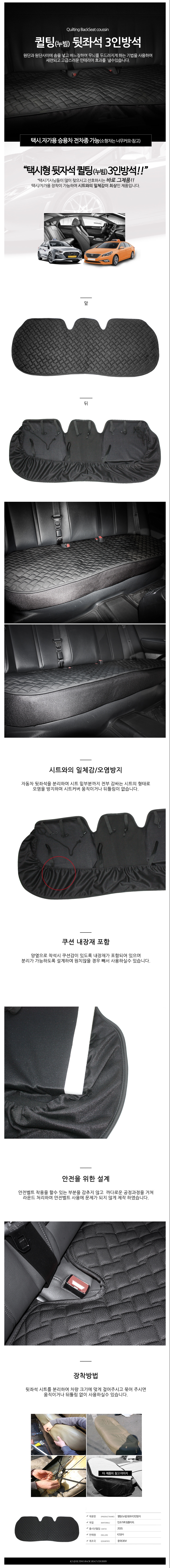 인테리어효과 오염방지 퀄팅 자동차 뒷자석 3인방석 이미지/
