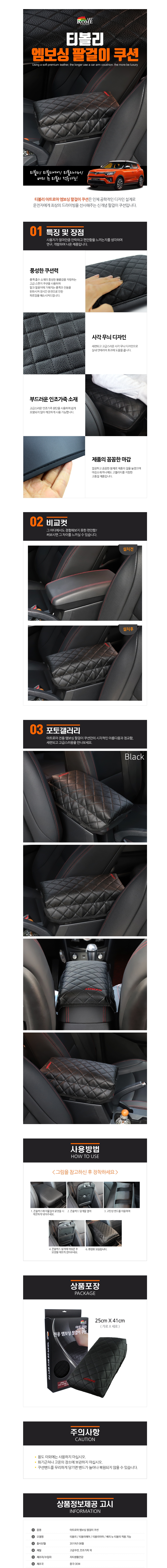 티볼리아머 엠보싱 팔걸이 쿠션 블랙 차량용 콘솔쿠션