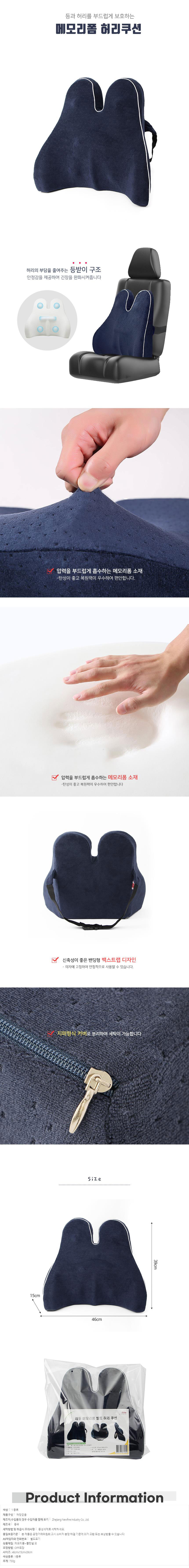 등받이 메모리폼 백스트랩 허리쿠션 네이비 등받침 이미지/