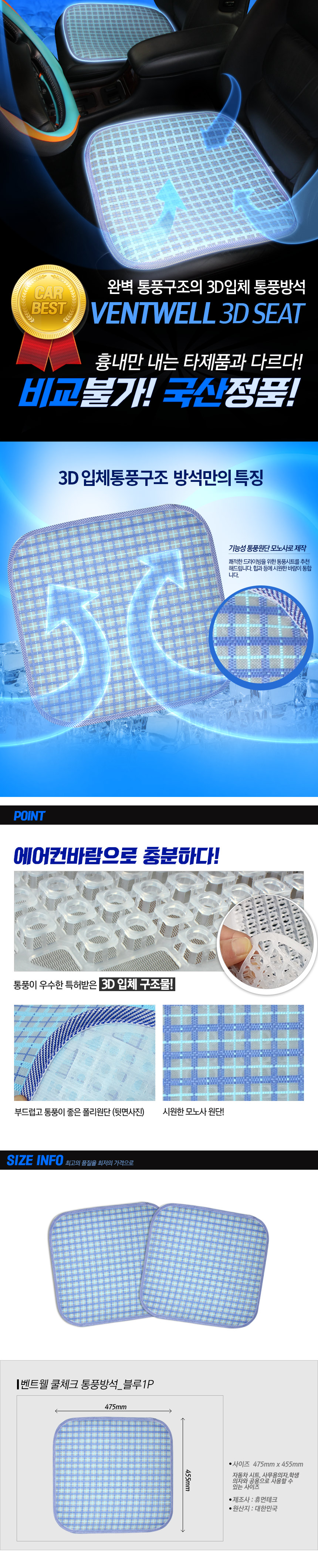 통풍방석 사무방석 자동차방석 퍼즐체크 방석