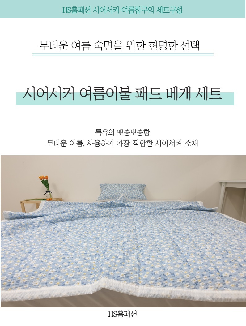 시어서커 누빔 여름이불 패드 베개 세트 이미지/