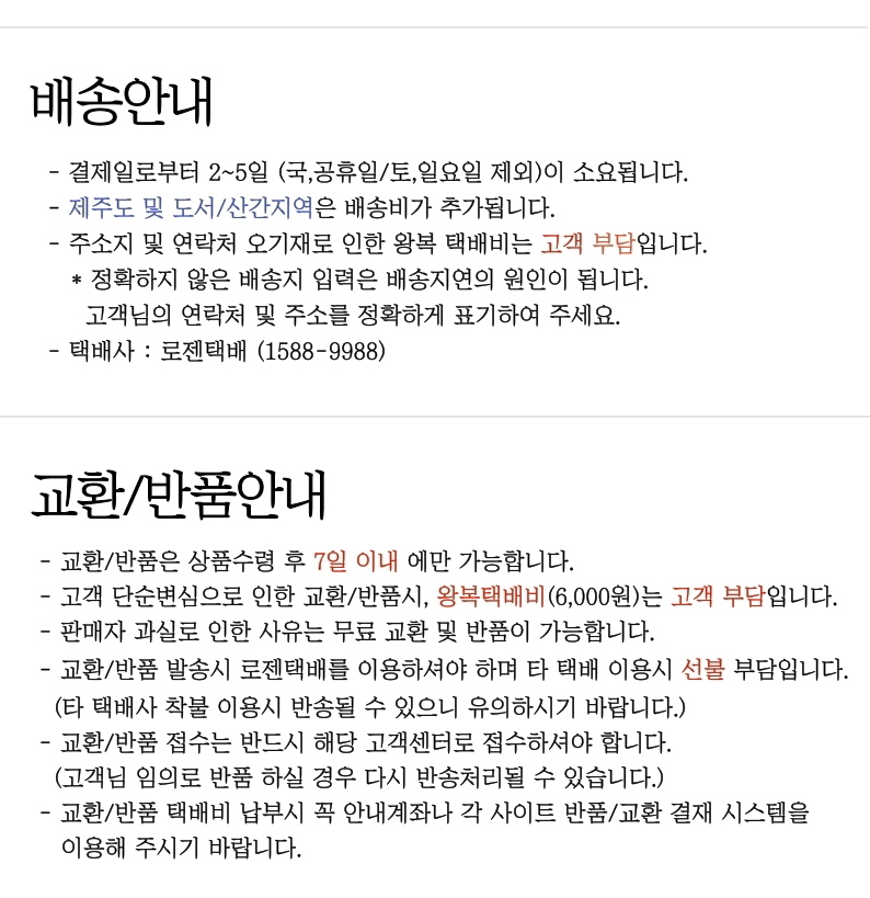 • - 단순 고객변심에 의한 반송 또는 교환의 경우(소요경비)