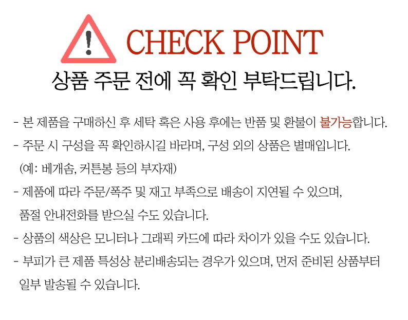 • 다른 제품과 같이 주문할 경우 따로 배송됨을 말씀드립니다.