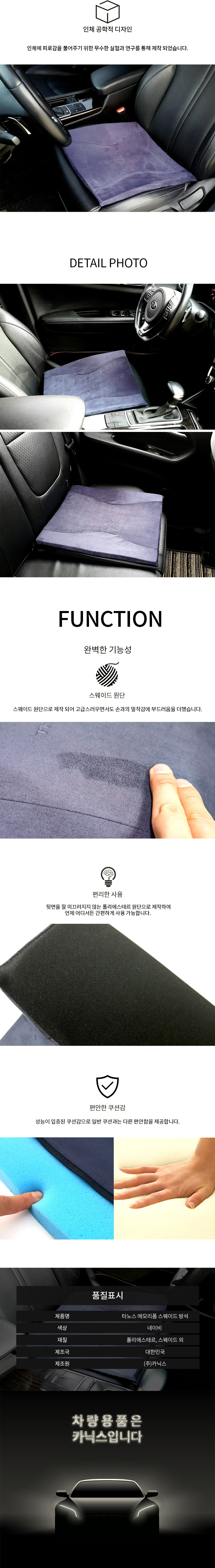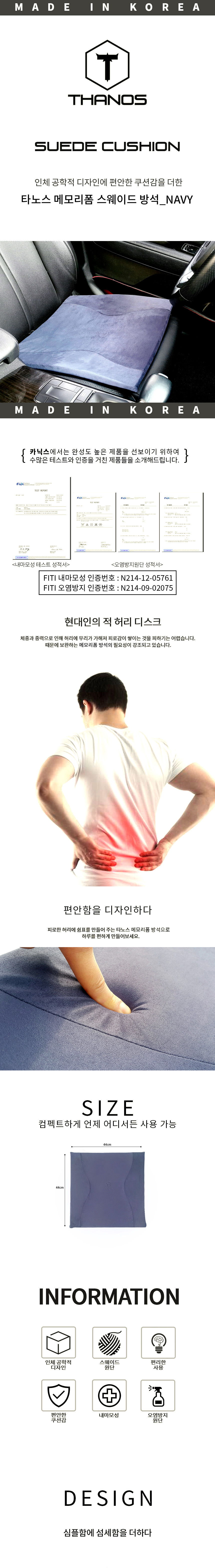 방석 메모리폼 스웨이드 의자 시트 커버 네이비