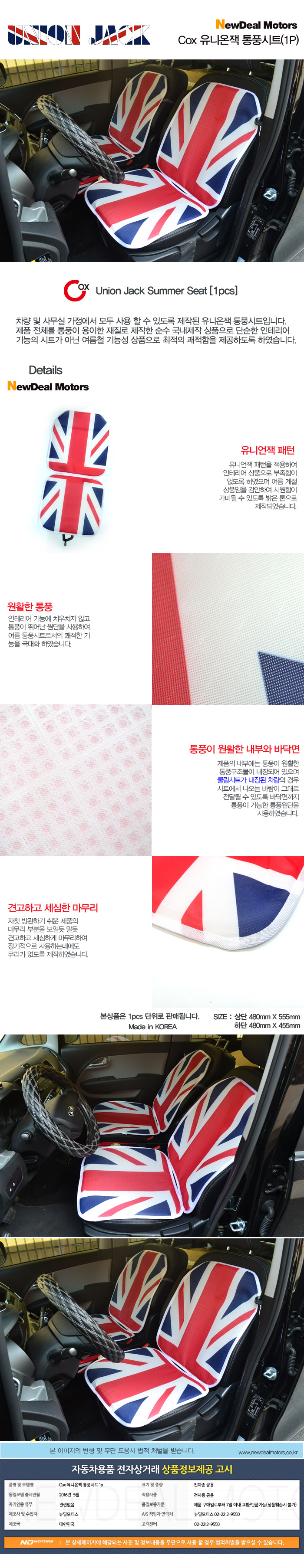 ETC 자동차 통풍 시트 1p 유럽 차량 쿨링 여름 커버