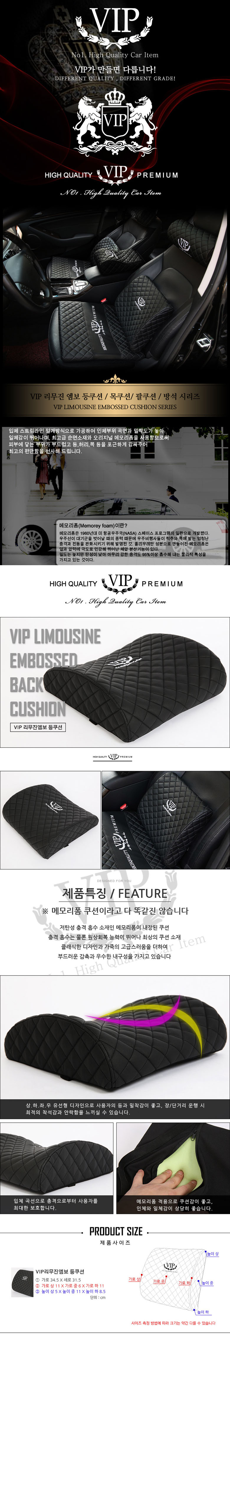 vip 리무진엠보 메모리폼 가죽쿠션 허리쿠션