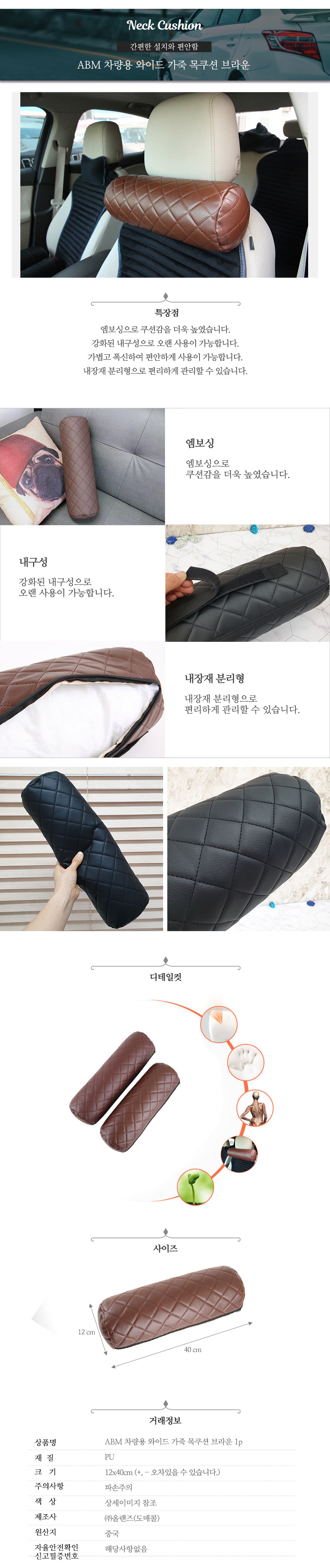 브라운 와이드 가죽목쿠션 차량용 목쿠션 차량용쿠션 이미지/