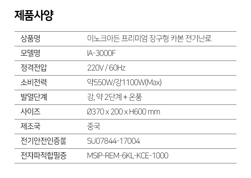 이노크 나노카본 프리미엄 전기난로히터 1100W 3000F 이미지/